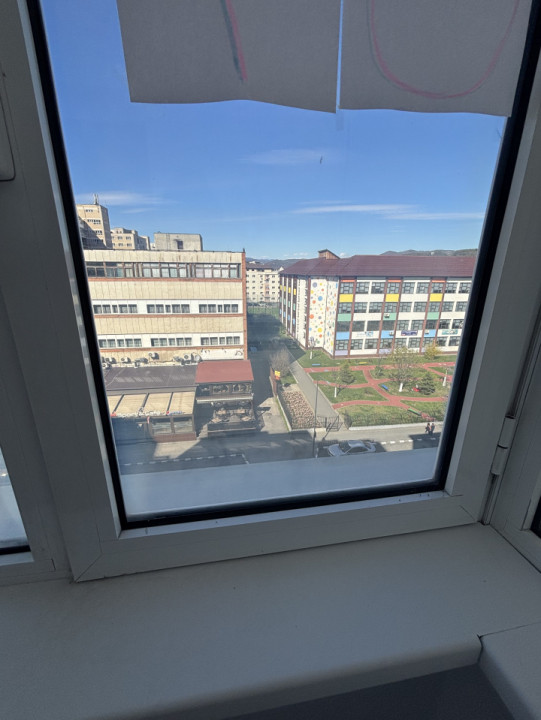 Apartamentul este situat la etajul 5 din 6, într-un bloc reabilitat termic, dotat cu lift, și oferă vedere dublă – atât spre bulevard, cât și spre zona școlii.