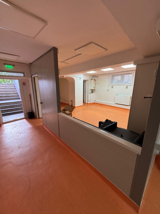 Deși se află la demisol, spațiul beneficiază de geamuri generoase care permit pătrunderea luminii naturale, asigurând un mediu luminos și plăcut pe tot parcursul zilei.