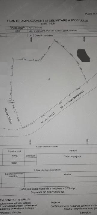 RSA Estate va propune spre vanzare teren intravilan situat in sat Giurgiuveni, comuna Golesti, judetul Valcea